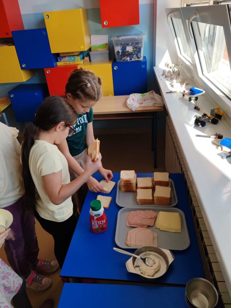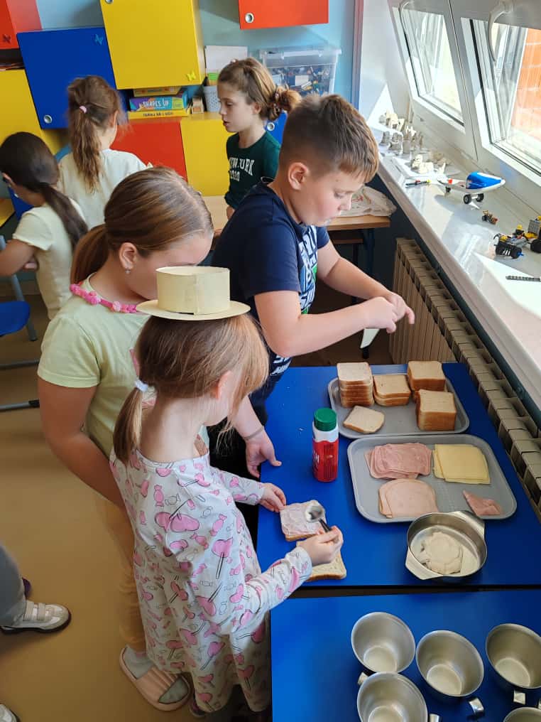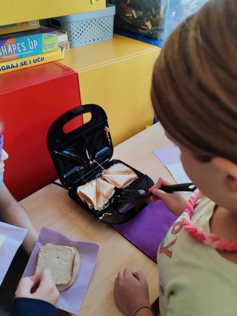 Učenici su doznali male trikove kao npr. kako napraviti što mekanije tijesto i koji sir je najbolji za tost sendviče. Svojim vještim rukama slagali su sendviče, koristili toster, mijesili, valjali i rezali tijesto, razbijali jaja, premazivali klipiće… Na kraju smo uživali u ukusnim delicijama koje su učenici nesebično podijelili i ostalim djelatnicima naše škole te na taj način sve razveselili. (Lea Horvat)