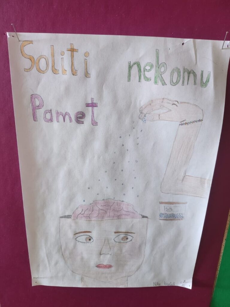 Učenici 5. a i 6. a s učiteljicom Rominom Gorički Mihaljinec istraživali su poslovice i mudre misli na kajkavskome narječju. Ti su sati kroz mjesec ožujak bili učenicima jako zabavni jer su govorili kajkavskim, a bilo im je neobično čuti učiteljicu kako govori svojim mjesnim govorom. Svaki je učenik odabrao jednu mudru misao i pokušao ju objasniti. Učenici su uvidjeli da je u svim poslovicama često korišteno preneseno značenje te su objašnjavali njegovu ulogu u usmenoj narodnoj književnosti. Uočili su vrijednost poslovica u tumačenju svijeta oko nas. Smišljali su priču na kajkavskome narječju gdje su trebali svoju poslovicu, odnosno mudru misao, koristiti kao pouku. Na kraju su svoje poslovice i mudre misli predstavili i zanimljivim ilustracijama gdje su prikazali njihovo doslovno značenje. Najljepši radovi izloženi su na panou na ulazu u školu. Uživajte u radovima učenika 5. a i 6. a razreda!