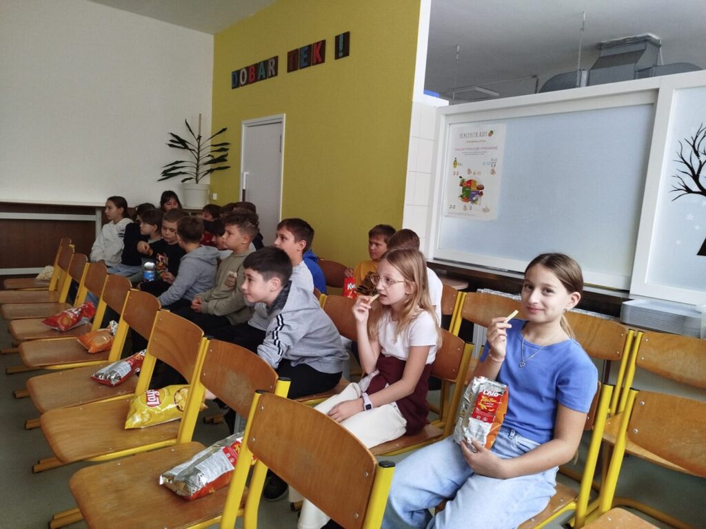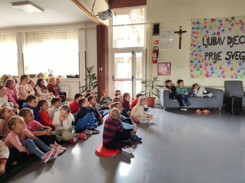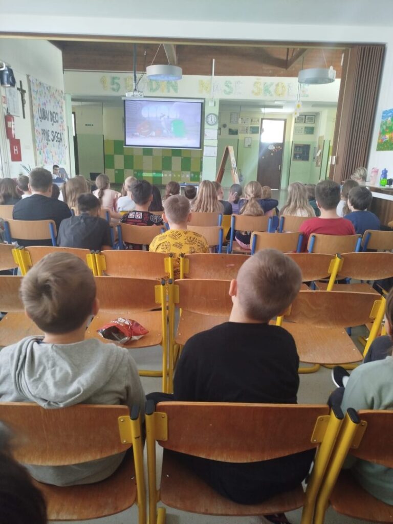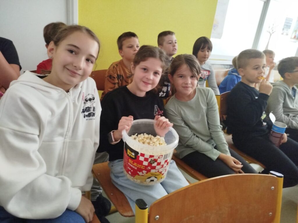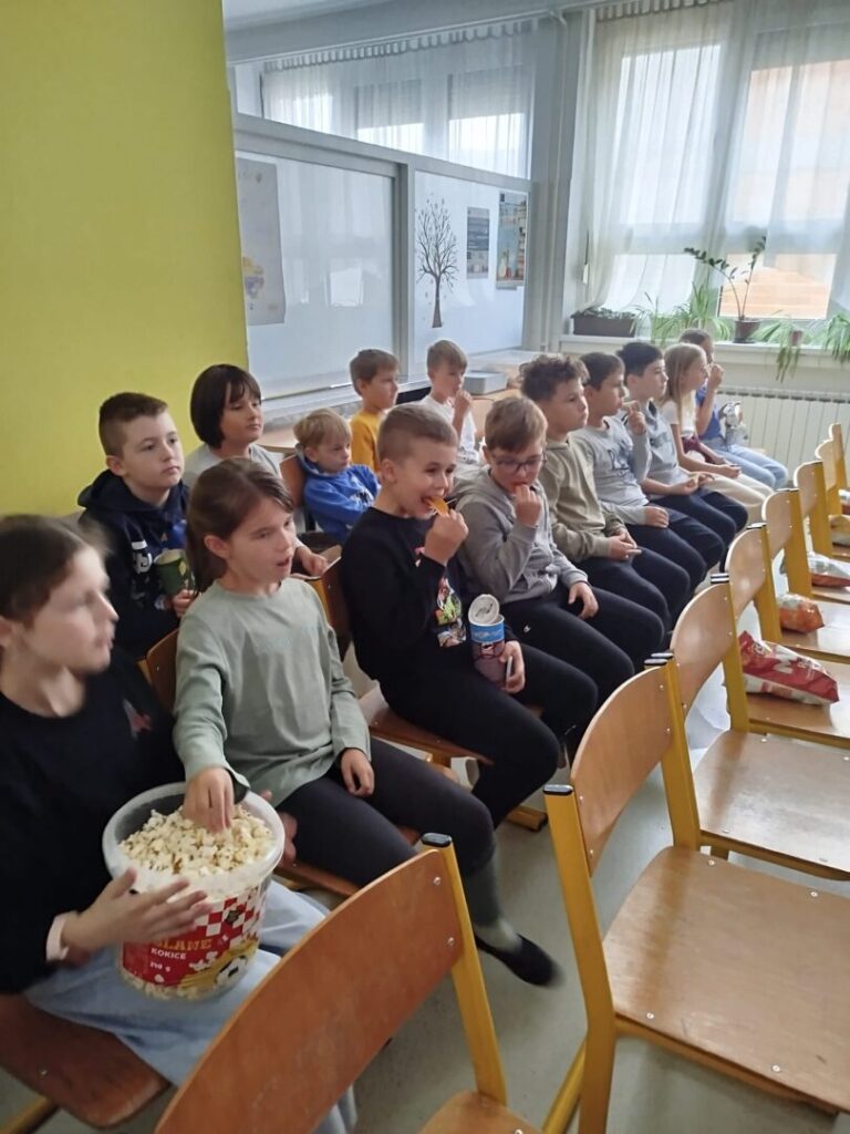 U petak se škola pretvorila u školsko kino. Prikazivao se film “Izvrnuto obrnuto” koji su gledali svi učenici razredne nastave. Nakon vrlo poučnog filma, učiteljice su razgovarale s učenicima o osjećajima i empatiji te istaknule njihovu važnost za svakodnevni život. (voditeljice aktivnosti Monika Barić i Lea Horvat)