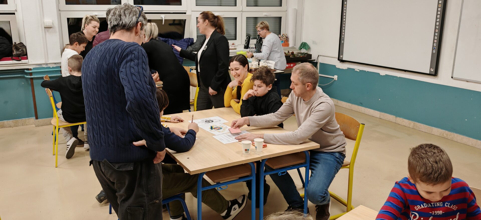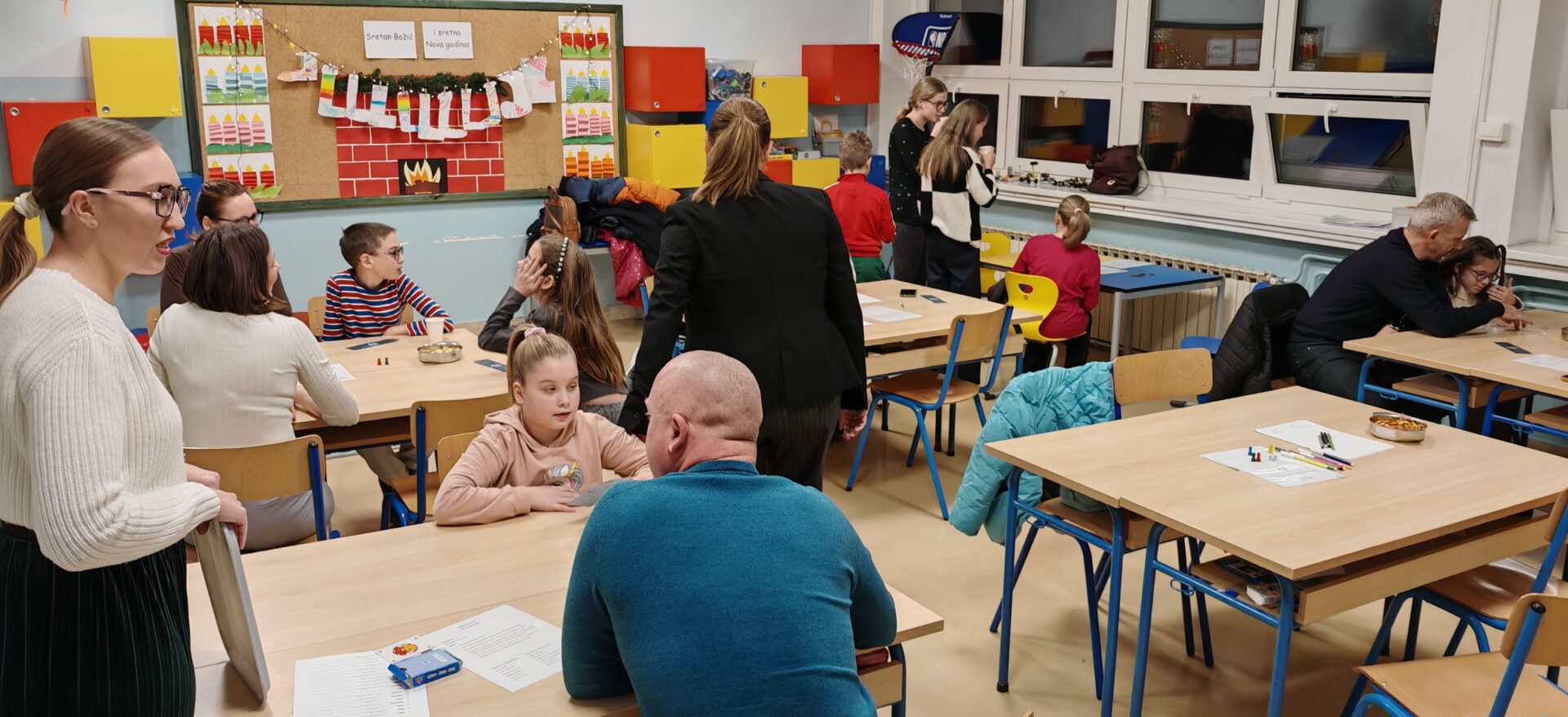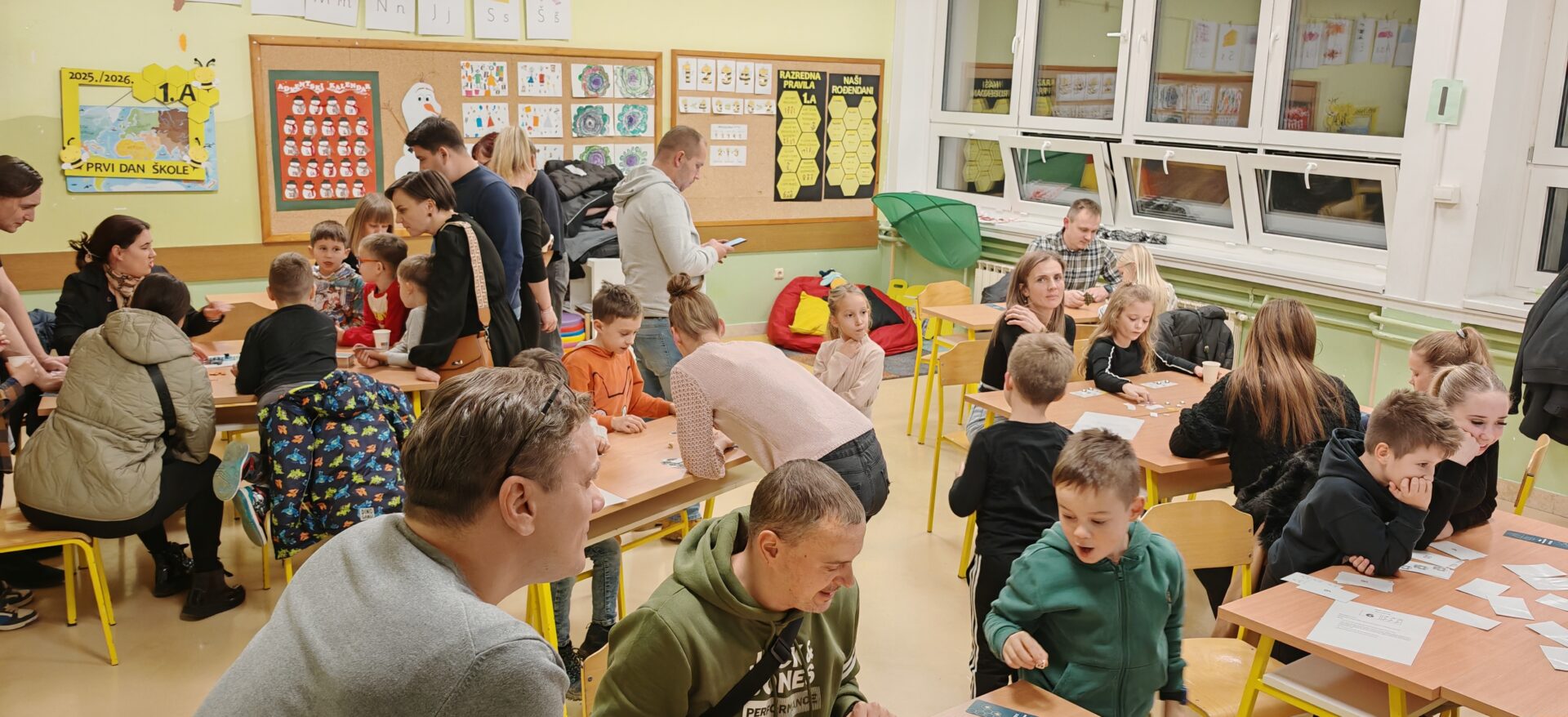 Posebno veselje vladalo je kada su roditelji, uz pomoć svojih mališana, uspješno rješavali zadatke koji su ih vratili u školske klupe.