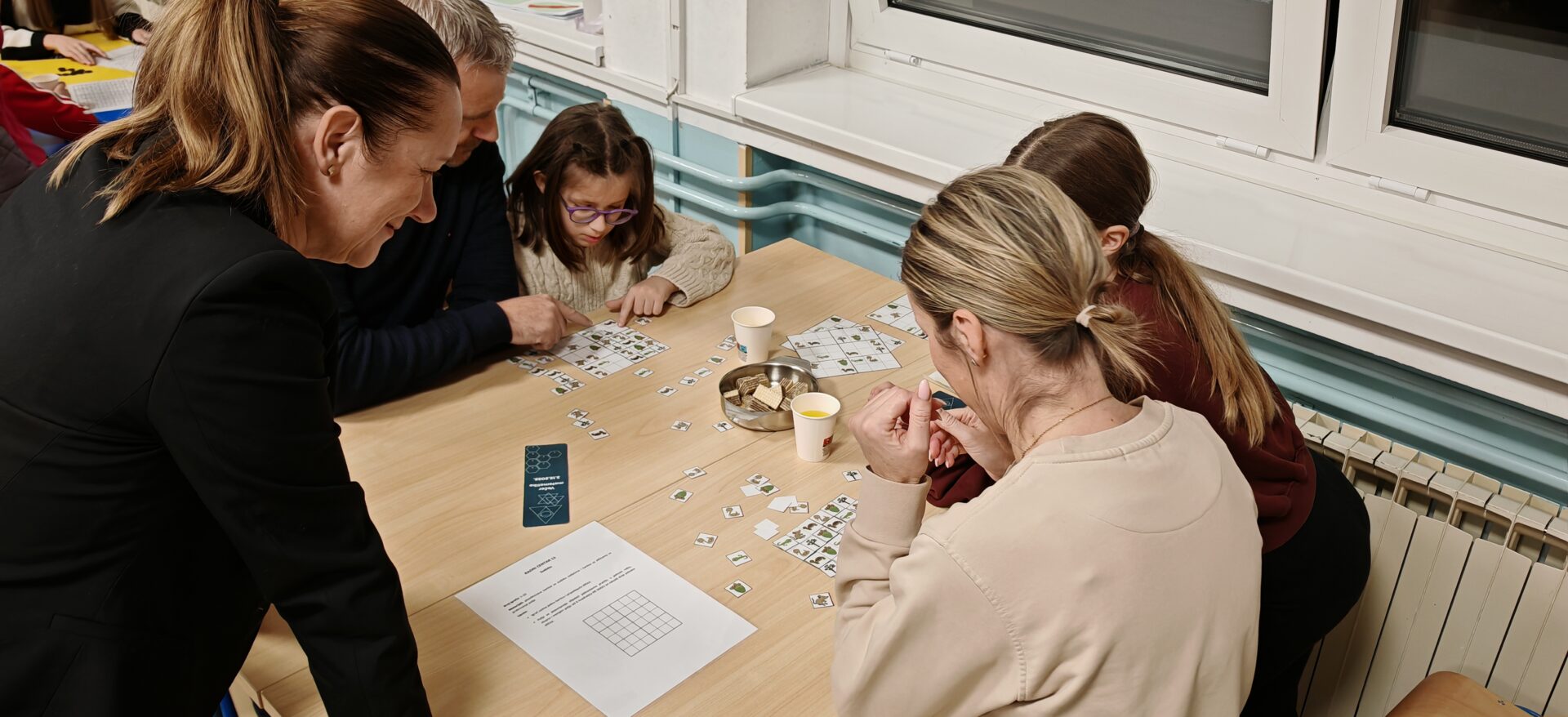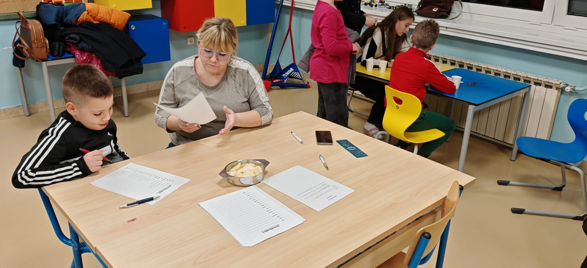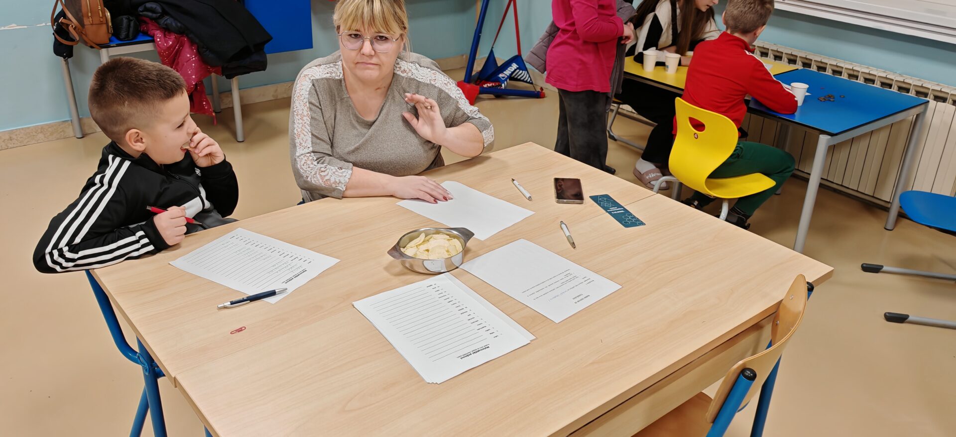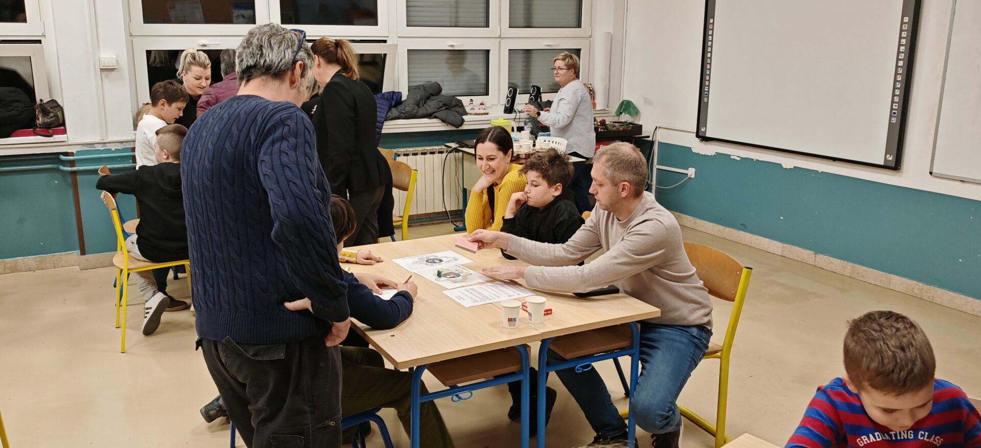Posebno veselje vladalo je kada su roditelji, uz pomoć svojih mališana, uspješno rješavali zadatke koji su ih vratili u školske klupe.