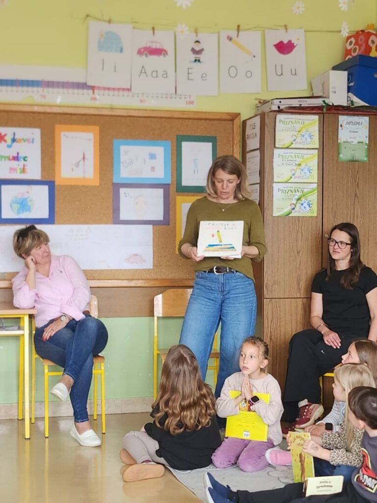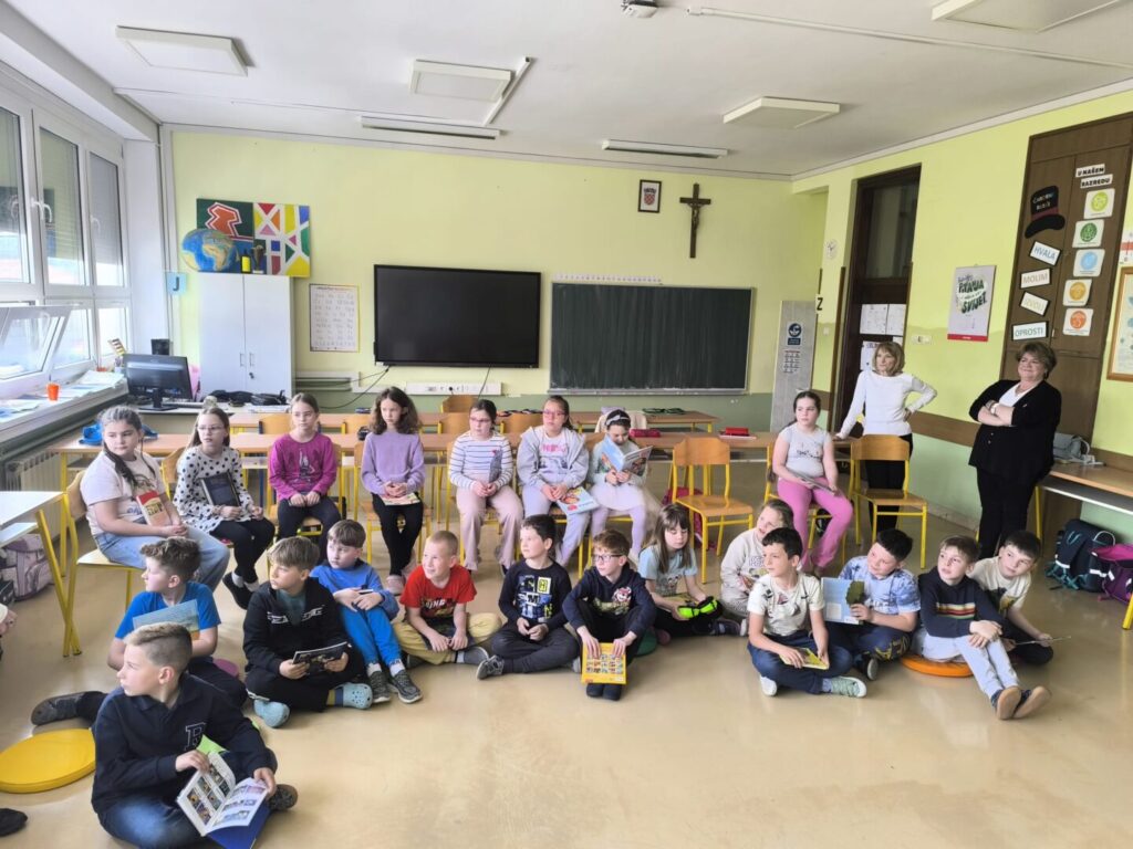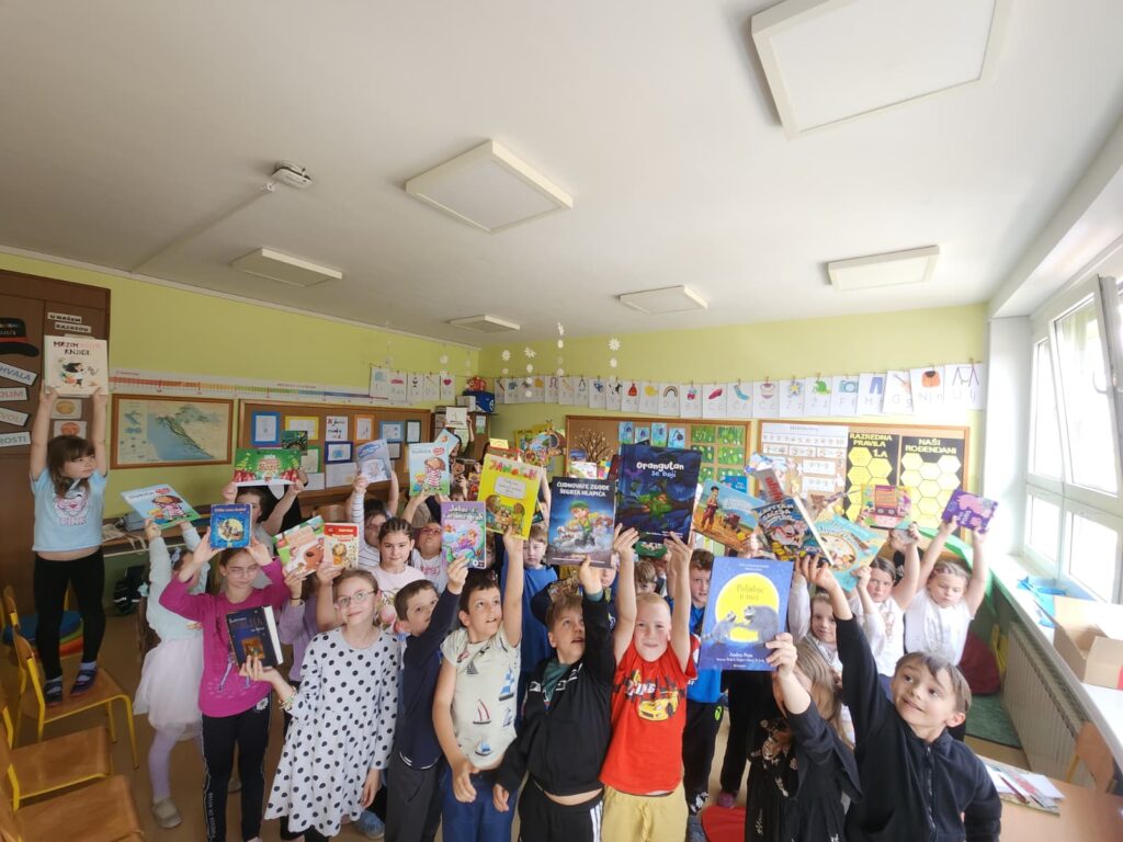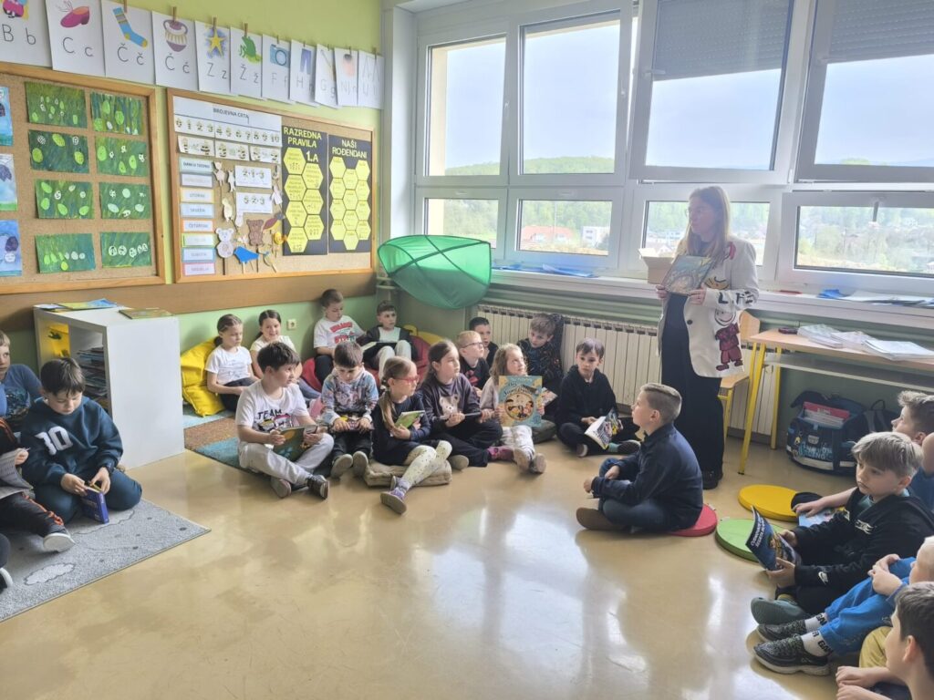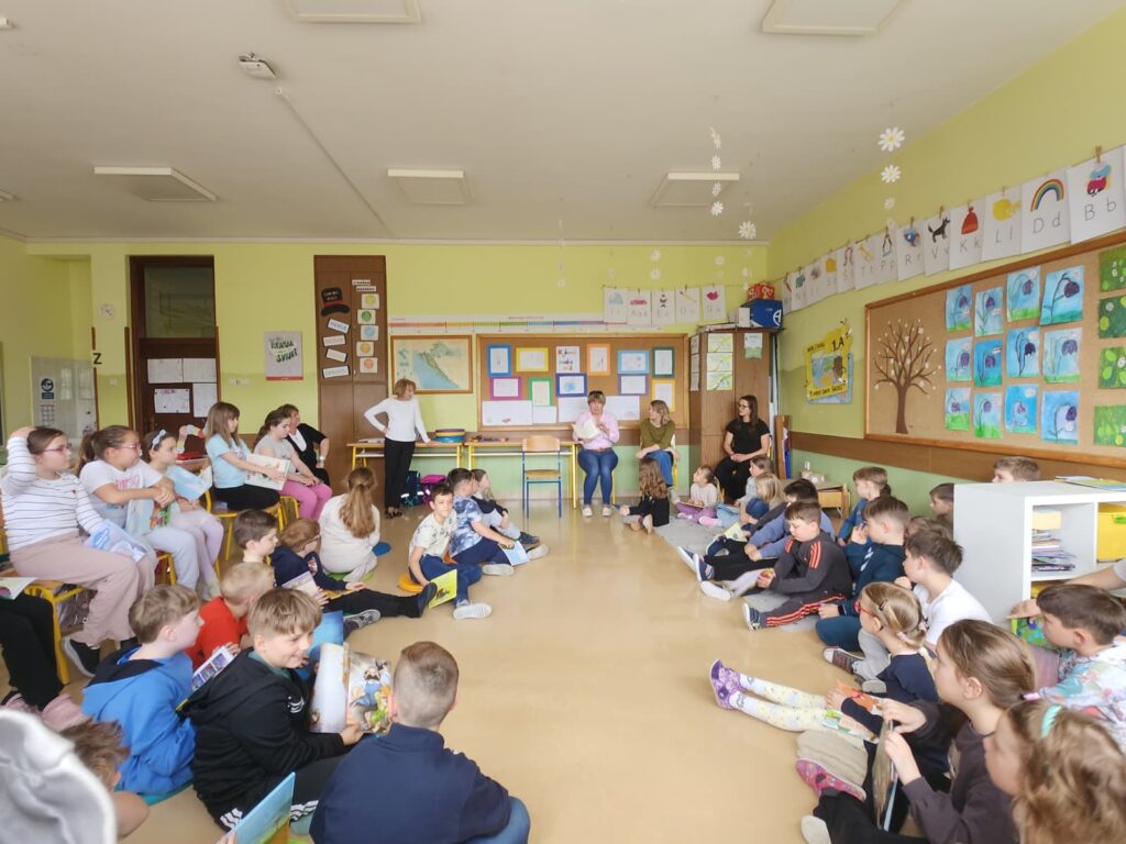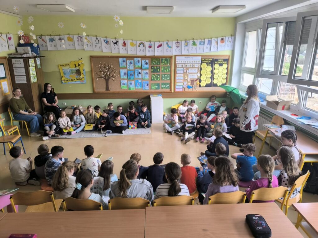 Nema ništa slađe i draže nego kada ujutro 23. travnja, na Svjetski dan knjige i autorskih prava, u školsku knjižnicu ujure prvašići ozarenih lišca u potrazi za novim naslovom koji im se svidio na prošlotjednom zajedničkom susretu predstavljanja omiljenih slikovnica povodom Noći knjige. Naime, na tragu poruke ovogodišnje manifestacije Noć knjige o zajedništvu, empatiji i dijalogu te nakon cjelogodišnjih razrednih projekata za poticanje čitanja, učiteljice Monika Barić, Mirna Domitrek Avirović i Anita Kobelščak te knjižničarka Blanka Doko organizirale su susret 1. a, 1. b i 2. a razreda. Jedni drugima predstavili smo svoje omiljene slikovnice i knjige te shvatili da ih svi rado čitamo, bez obzira na različitosti. Učenici su na dar dobili straničnike Noći knjige, slikovnice Jasne Balaško „Miško Škrapić Dolinom Krapine“, „Miško Škrapić Dolinom Sutle“ i „Krapineki“ Ivana Pelina koje su dio vrijedne donacije Narodne knjižnice Hum na Sutli, također povodom Noći knjige 2026.