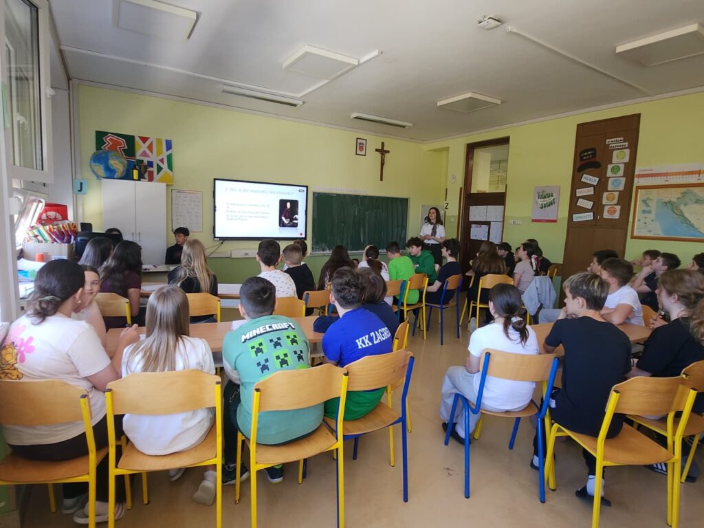 Zahvaljujući liku i djelu zagorskih i svjetskih velikana Maksimilijanu Vrhovcu, Matiji Gupcu, Vladimiru Bosnaru, Tinu Ujeviću i Nikoli Tesli, povezali smo sve učenike predmetne nastave. Na nastavi Hrvatskoga jezika i izvannastavnim skupinama Novinari i Radijska skupina te skupini Darovitih istraživali smo informacije o velikoj petorki te osmišljavali pitanja. Na temelju probranih pitanja učenik Sebastian Gajski (8. a, INA Novinari) izradio je zajednički kviz KVuST. Šest miješanih skupina svih razrednih odjela nazvanih po velikanima i manifestaciji (Maksimilijan, Vladimir, Matija, Tin, Nikola, Noć knjige) predstavljali su svoje razrede na KVuST-u održanom 23. travnja. Iz publike je bodrilo po dvoje učenika iz svakoga razreda, a među njima i jedan od svih ipak malo posebniji – unuk Vladimira Bosnara – ponosni osmaš Viktor Bosnar. Bilo je vrlo uzbudljivo i kompetitivno! Svi su bili odlični, no pobijedila je skupina Nikola: Mihael Ivček (5. a), Sunčica Kralj (5. b), Leon Ivanek (6. a), Lucija Špoljar (7. a), Karlo Poslon (7. b) i Lovro Margetić (8. a). Kviz su vodili šetaši Vita Šipek-Glavač i Dino Glavač.