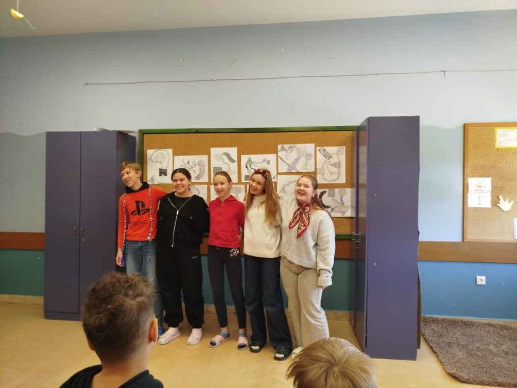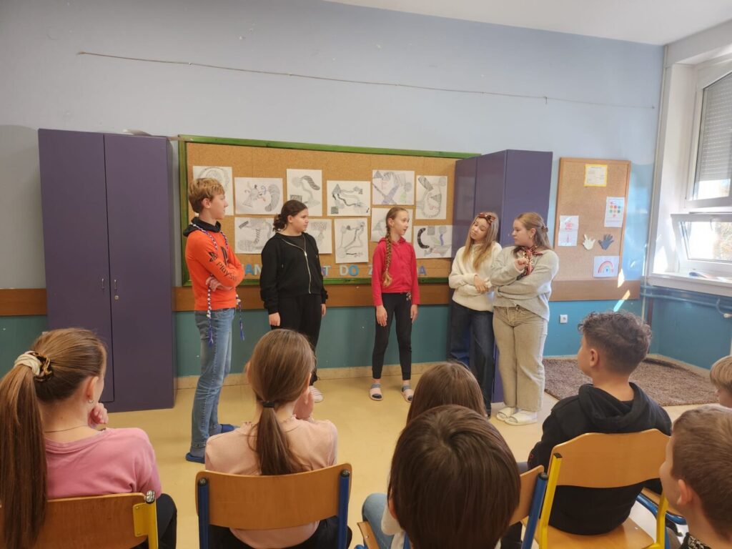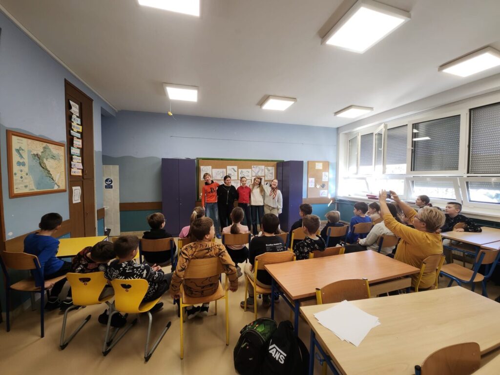 A Una je bez puno riječi ušla u svoj lik. Tako smo na izvannastavnoj aktivnosti Dramske igre i vježbe (DIV) odlučili obnoviti našu proljetnu scensku igru “Pesji život” i izvesti je za 4. a i učiteljicu Davorku Maček. Tijekom Mjeseca hrvatske knjige, 28. listopada, učionica 4. a/8. a na nekoliko minuta pretvorila se u kazalište u školi. Četvrtaši su bili pristojna publika, a DIV-ovci su nagrađeni slatkišima i velikim pljeskom svoje bivše učiteljice i knjižničarke.