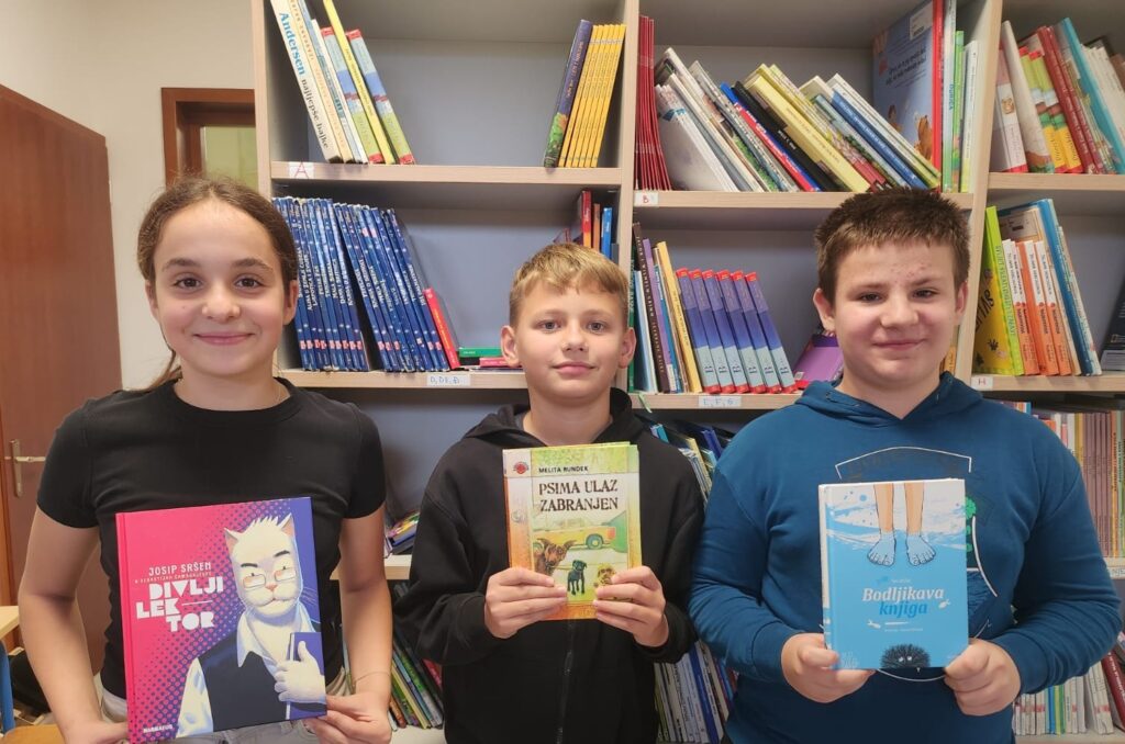Nakon čitanja kvizaških naslova marljivi bibliofili iz 6. a – Andrija Dreven, Borna Grabušić, Leon Ivanek i Vita Šipek-Glavač – tijekom ovoga tjedna u školskoj knjižnici pristupili su kvizu sa 16 zanimljivih pitanja o knjigama Ive Dužić „Bodljikava knjiga“, Josipa Sršena i Sebastijana Čamagajevca „Divlji lektor“ te Melite Rundek „Psima ulaz zabranjen (vesela ljubavna pripovijest o psima, knjigama i ostalome)“ . Aktivnosti su bile zabavne i motivirajuće, a sada još “samo” čekamo poziv organizatora za školskog finalista – najs(p)retnijeg učenika koji će u pratnji školske knjižničarke nazočiti završnoj svečanosti i izvlačenju dobitnika nagrada u Nacionalnoj i sveučilišnoj knjižnici u Zagrebu.