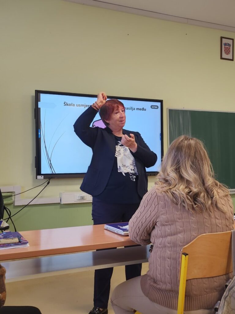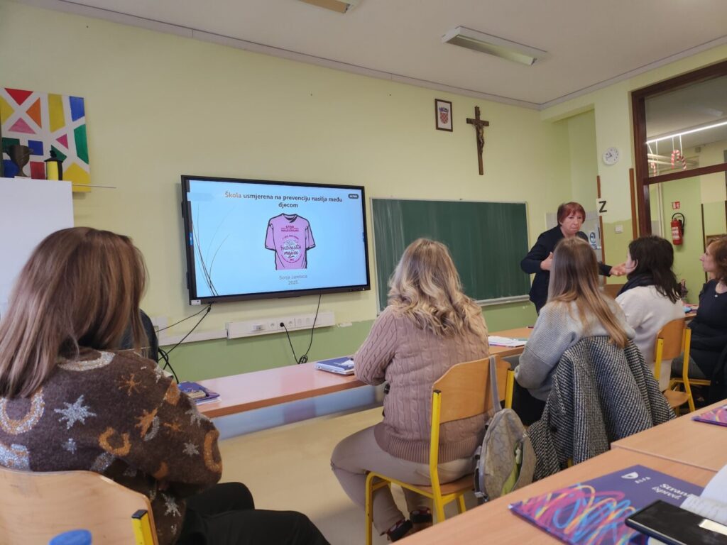 U sklopu stručnog usavršavanja održano je predavanje „Škola usmjerena na prevenciju nasilja među djecom“, koje je vodila Sonja Jarebica, mag. paed. soc. Predavanje je bilo vrlo praktično i usmjereno na stvarne situacije iz školskog okruženja. Sudionici su imali priliku naučiti kako škole mogu aktivno sprječavati nasilje među učenicima te kako stvarati sigurno i poticajno okruženje za svu djecu.