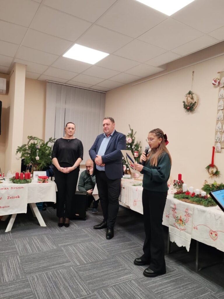 Uz načelnika Općine Josipa Beljaka, izložbu je organizirala i otvorila ravnateljica Brigitte Gmaz, predsjednica Udruge Hrvatska žena Stubičke Toplice. Svečanost je vodila učenica 6. a razreda Kiara Jakopović koju je za ovu ulogu pripremila učiteljica Romina Gorički Mihaljinec. Uz prvu ovogodišnju božićnu pjesmu zaplesao je naš 3. a razred pod vodstvom učiteljice Lee Horvat, a nastupila je i Dramska skupina učiteljice Mirne Domitrek Avirović. Svojim su nastupima ozarili brojne prisutne mještane. Pedagog Goran Jenić bio je tehnička podrška. Voditeljica Učeničke zadruge Bobi Martina Kovačec pobrinula se za bogati izložbeni prostor naše škole uz pomoć učiteljica Davorke Mačke i Suzane Šalković.