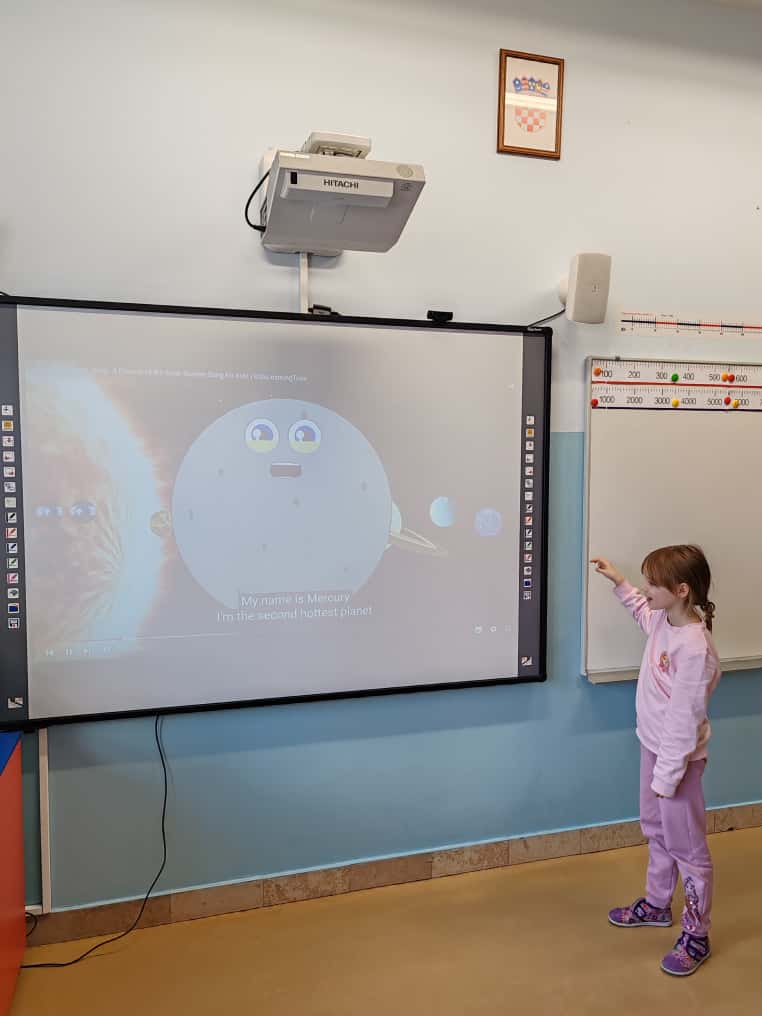 Tijekom putovanja učenici su otišli do Svemira i upoznali Sunčev sustav. Naučili su da se Sunčev sustav sastoji od Sunca i osam planeta: Merkur, Venera, Zemlja, Mars, Jupiter, Saturn, Uran i Neptun. Pomoću kratkih tekstova, čitanja s razumijevanjem, videozapisa, križaljki, crteža i mozgalica upoznali su svaki planet. Na putovanju se svemirski brod najdulje zadržao na Zemlji jer je to jedini planet za koji se zna da ima život pa će ga malo detaljnije istražiti. (Lea Horvat)