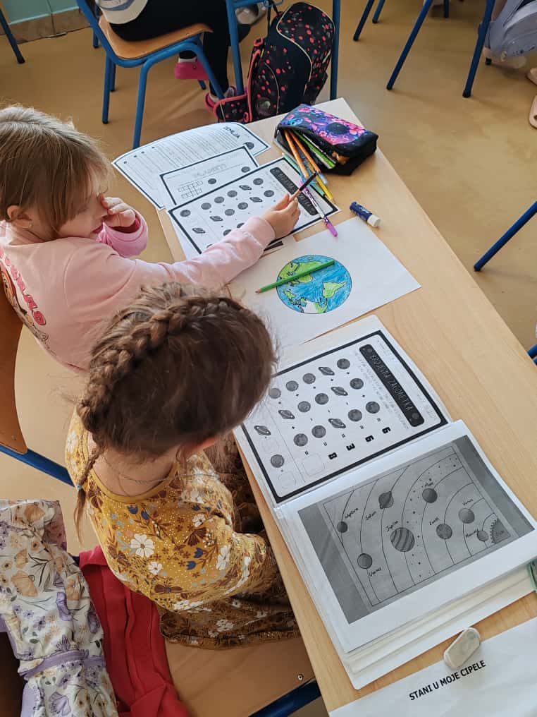 U tjednu od 6. do 10. listopada učenici 3. a razreda s učiteljicom Leom Horvat obilježili su Tjedan svemira različitim prigodnim i zanimljivim aktivnostima. Aktivnosti su bile povezane s izvannastavnim aktivnostima Čitateljski klub i Mali putnici.